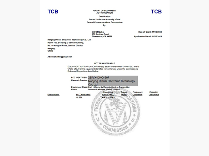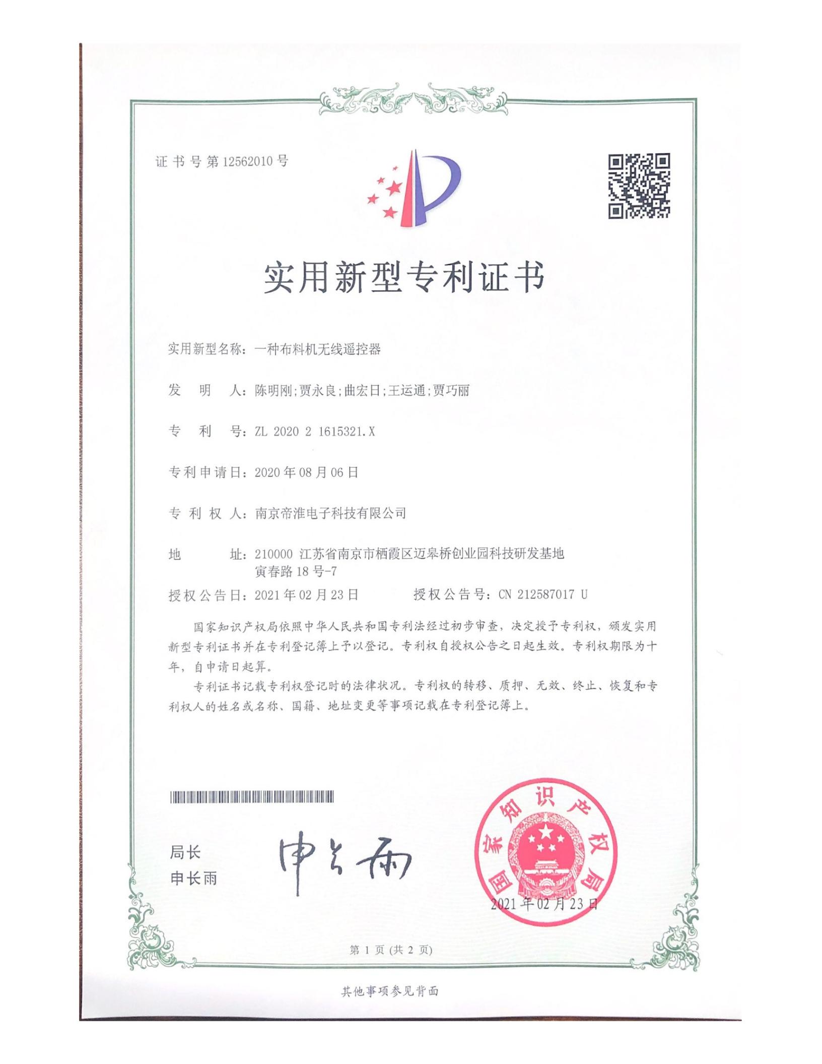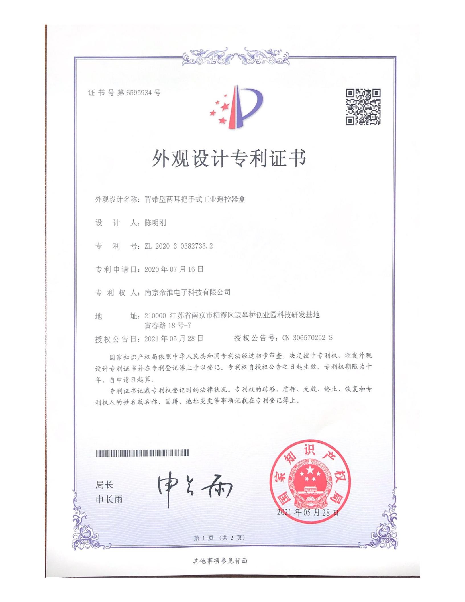 南京帝淮电子科技有限公司,国内工业遥控器行业领军企业,自主研发、定制、非标设计各类工业级无线遥控器、工业级有线控制器、智能化自主算法逻辑的本地控制器等系列产品。已经申请及正在申请的技术专利、外观专利有近三十项左右,并通过了CE欧盟认证、国家级试验检验报告、EMC电磁兼容认证等。